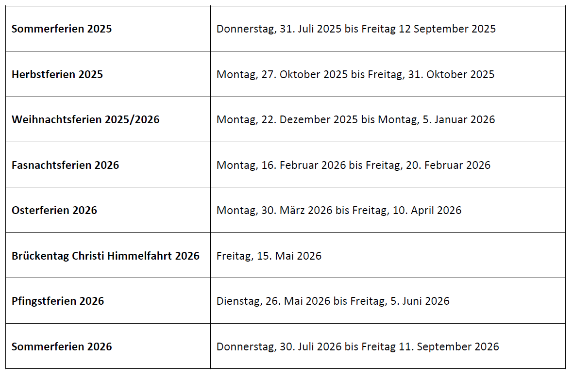Ferienplan Schuljahr 25/26 Ferienplan Schuljahr 26/27